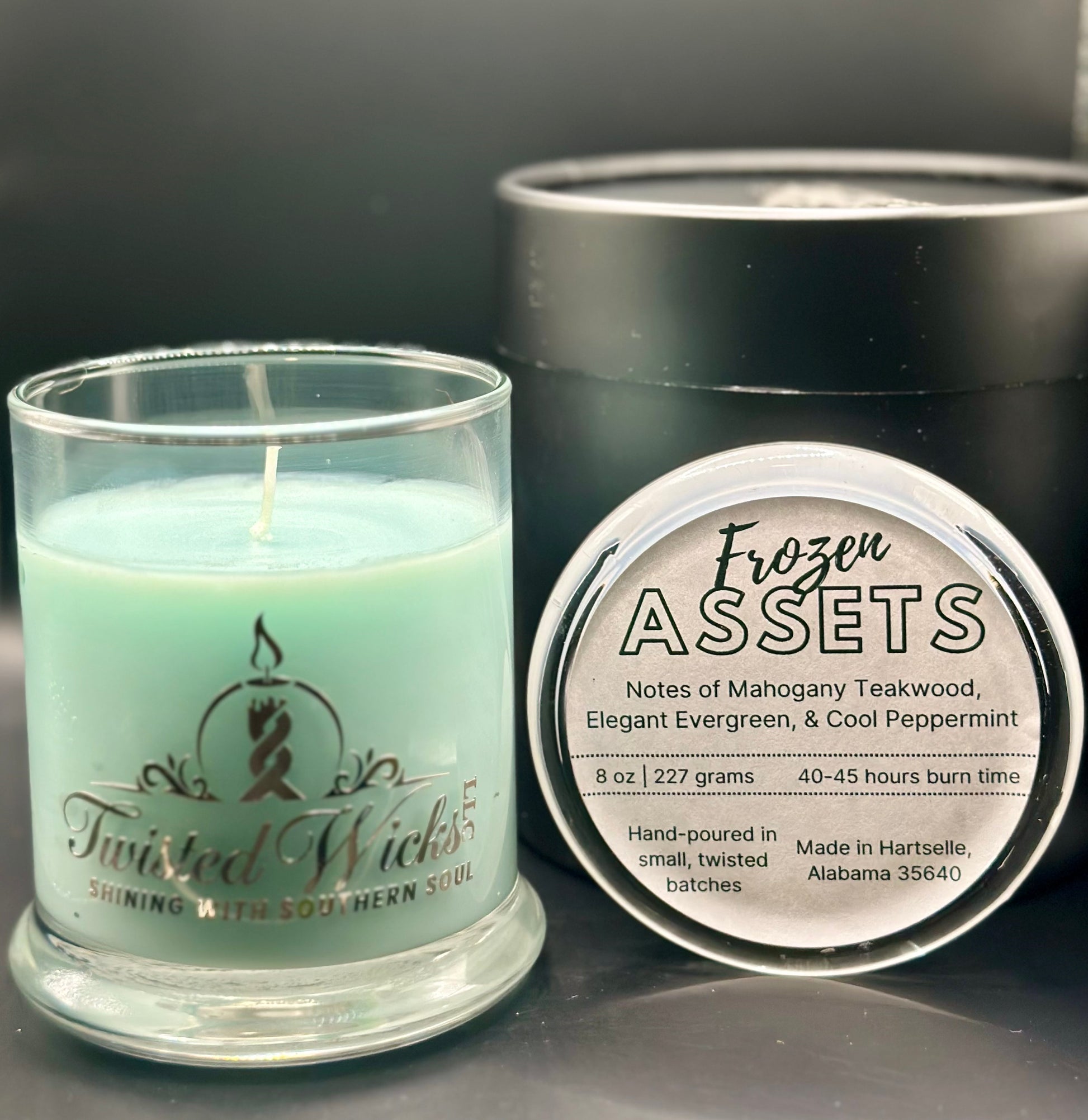 Climbing the corporate ladder takes more than handshakes and fake smiles—it takes leverage. Frozen Assets, part of The Corporate Ladder series, delivers that sharp edge with a scent that's equal parts calculated and commanding: cool evergreen, crisp peppermint, and a dark undercurrent of mahogany teakwood. It's the kind of candle that doesn't just sit pretty on your desk--it reminds everyone that you're holding all the cards, and they're iced out until you say otherwise.