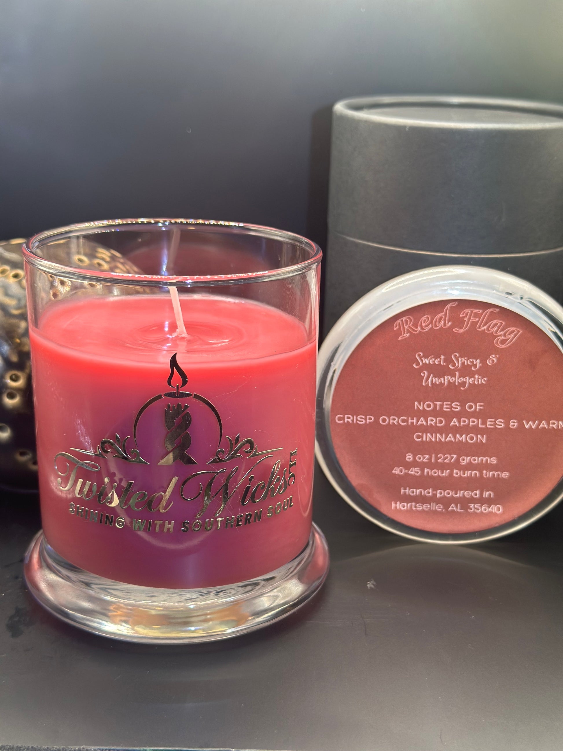 Bold, sweet, and impossible to ignore. Red Flag is a crisp apple and cinnamon combo that turns up the heat just enough to keep things interesting. It's the kind of scent that makes an entrance, and leaves a lasting impression.
