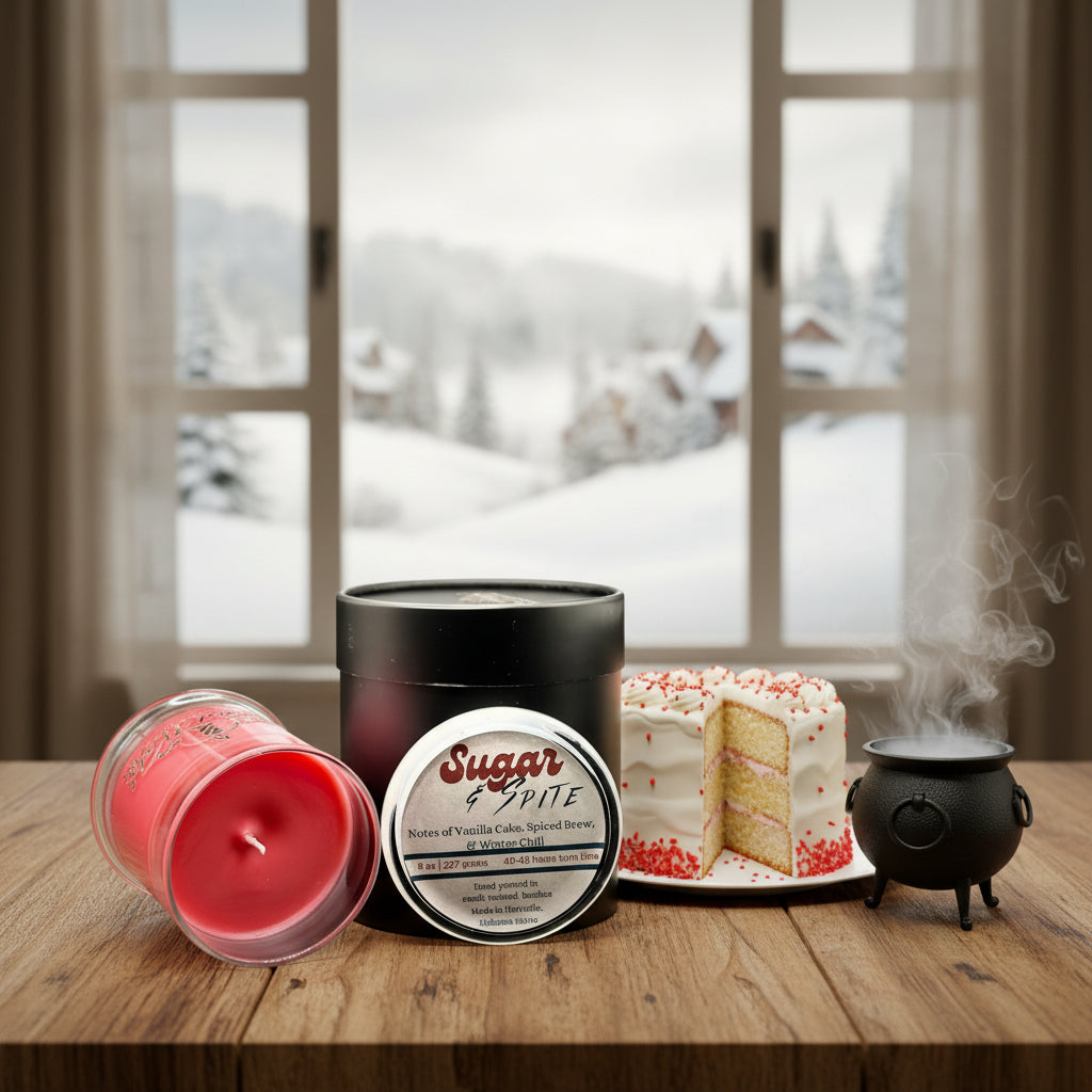 Sugar & Spite is what happens when cozy holiday vibes collide with a little delicious chaos. It starts soft--vanilla cake sweetness and warm bakery notes--then swings hard into Winter Wonderland's cool, crisp sparkle. Just when you think you've got it figured out, Witches Brew sneaks in with that dark, spicy edge that keeps things interesting...and just a little dangerous.