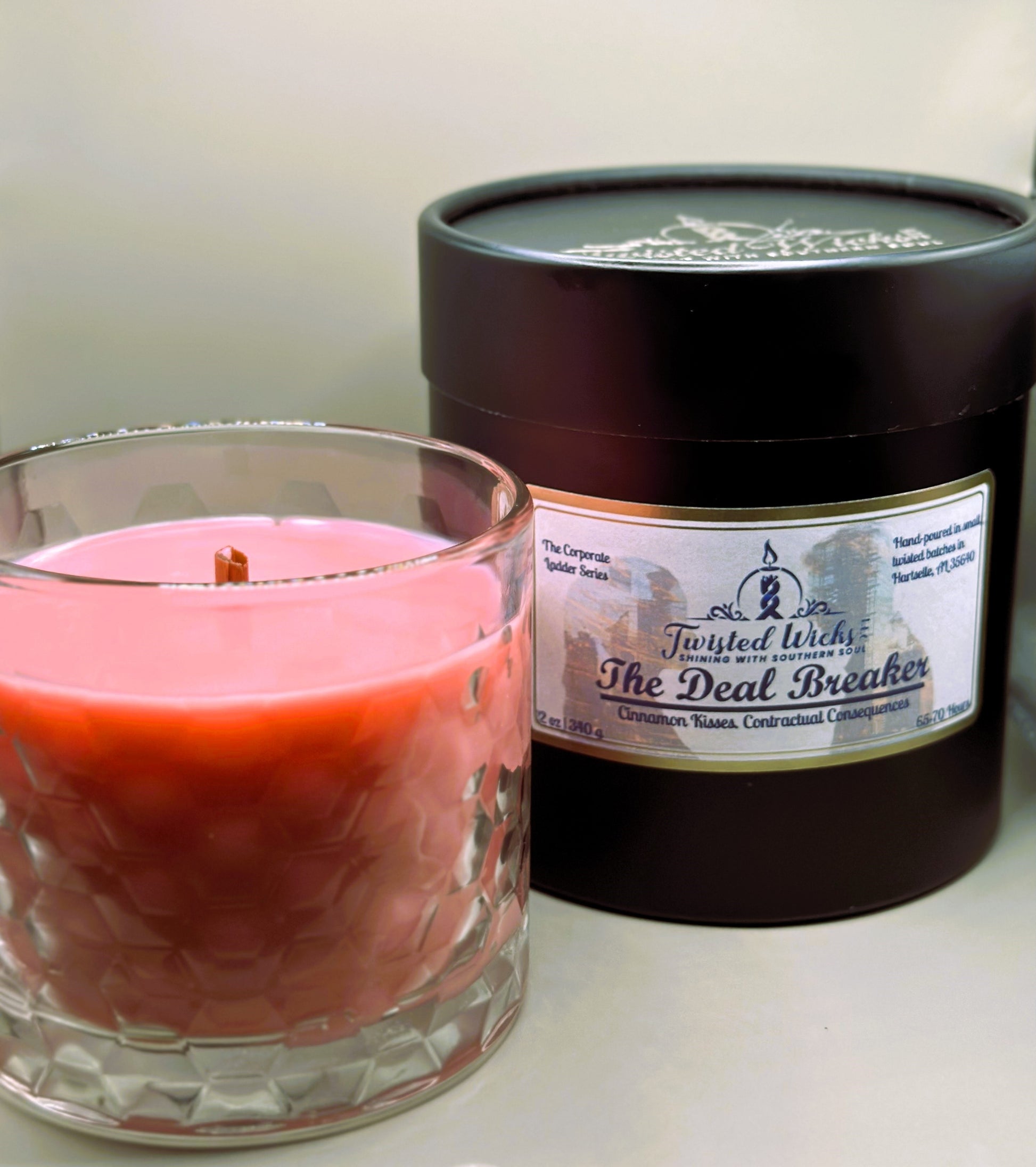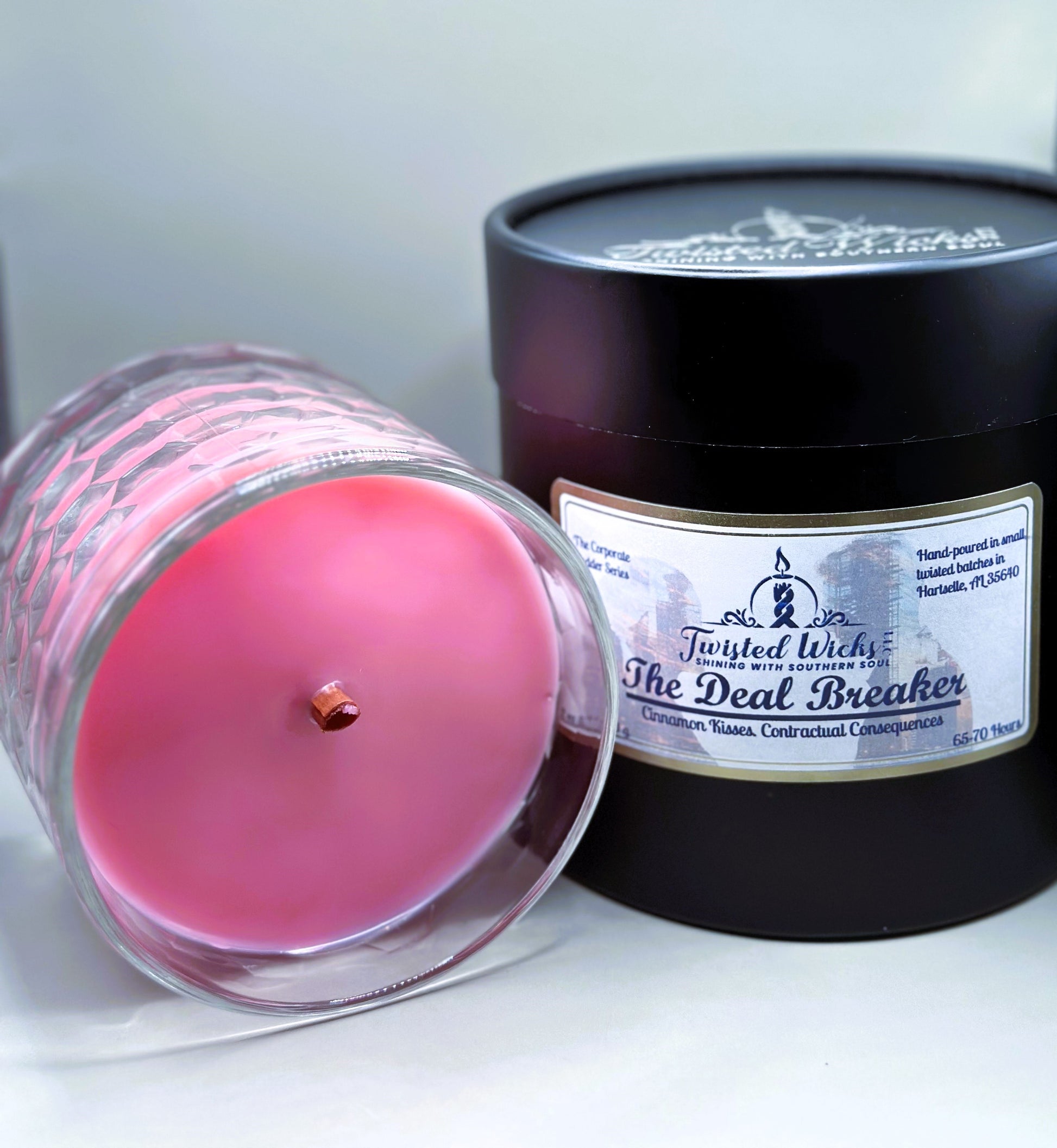 This is the candle that smells like sweet beginnings and fiery endings, a reminder that not every contract is meant to last… but it sure can burn hot while it does. Hand-poured in small batches with our premium para-soy wax blend and clean-burning wicks, The Deal Breaker makes any room feel like the fine print is about to get twisted.