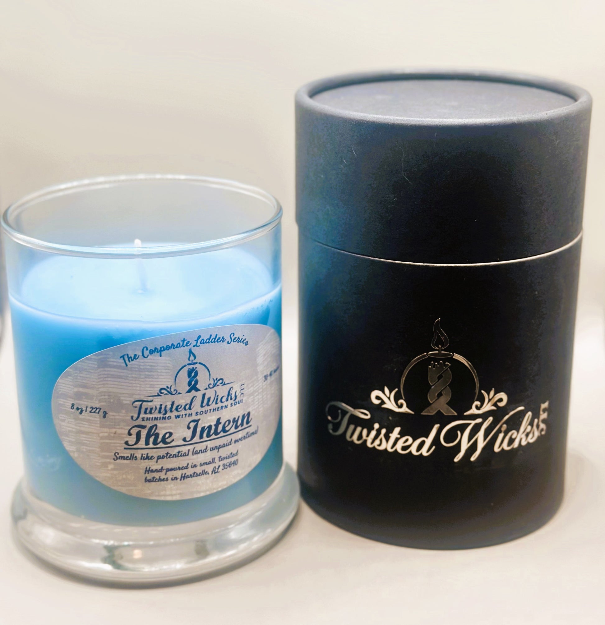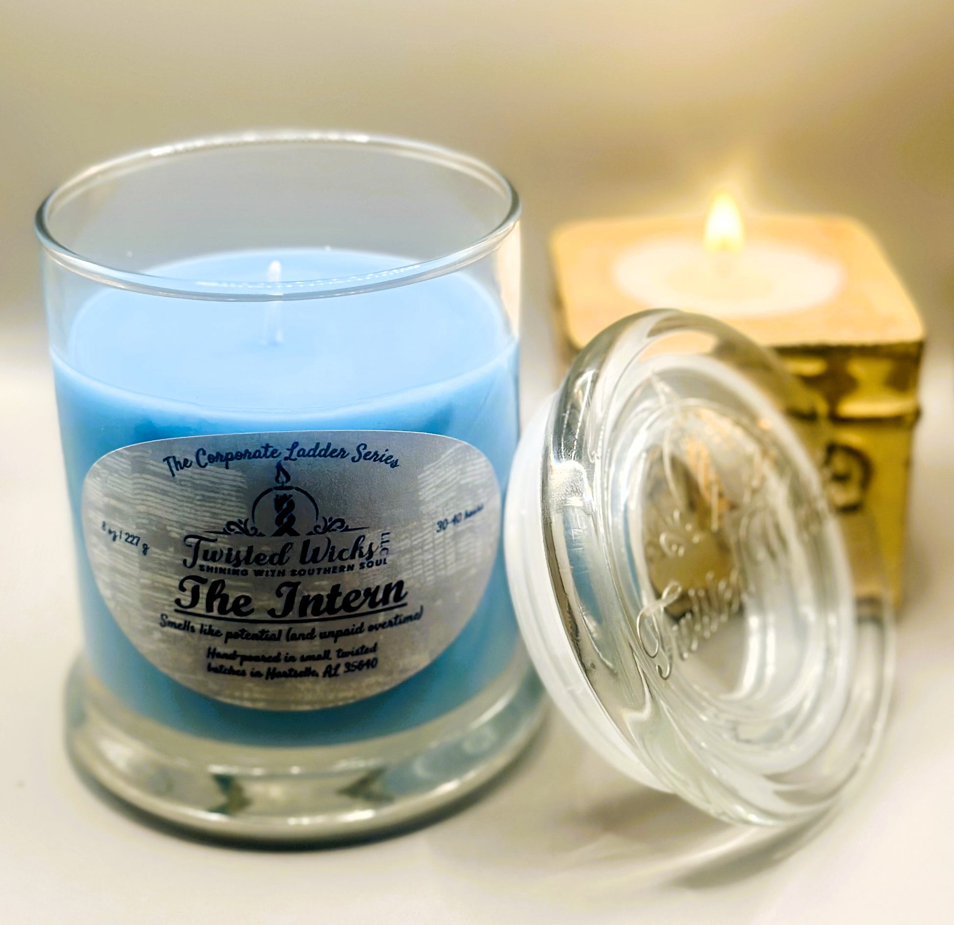 Fresh-faced, over-caffeinated, and wildly underpaid, The Intern candle, part of The Corporate Ladder Series, captures the scent of eager ambition mixed with just a hint of exploitation. It's bright, a little naive, and burns way longer than it should--just like the real deal. Light it up when you want that wide-eyed optimism in the room...without the awkward small talk about "networking opportunities."